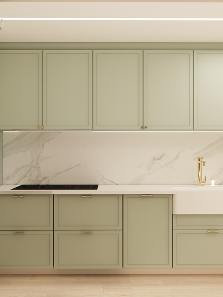 Uma cozinha verde, super em alta, faz morada e traz uma leveza e dinamismo para o apartamento.